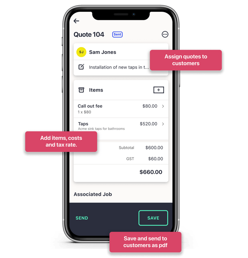 Keep track of your quotes by linking to jobs and assigning a status.