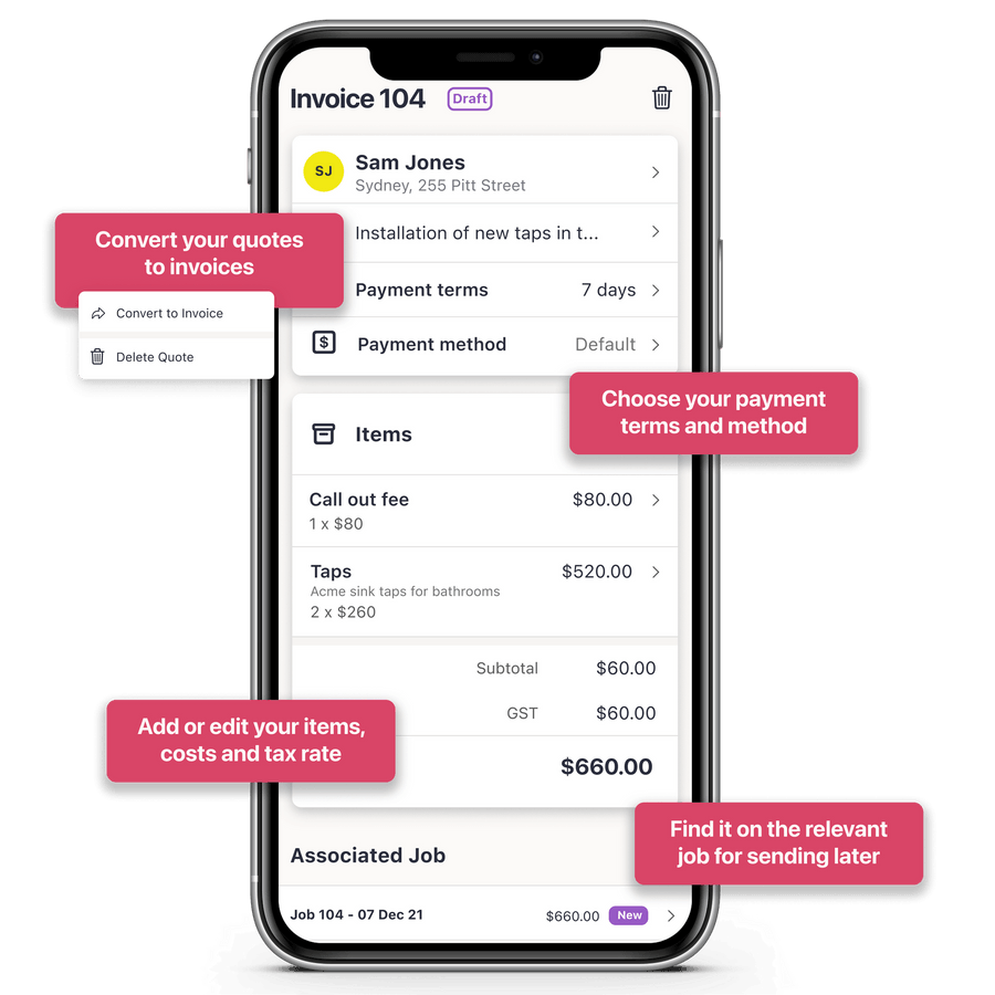 Easily convert existing quotes to invoices and cut your admin time in half.