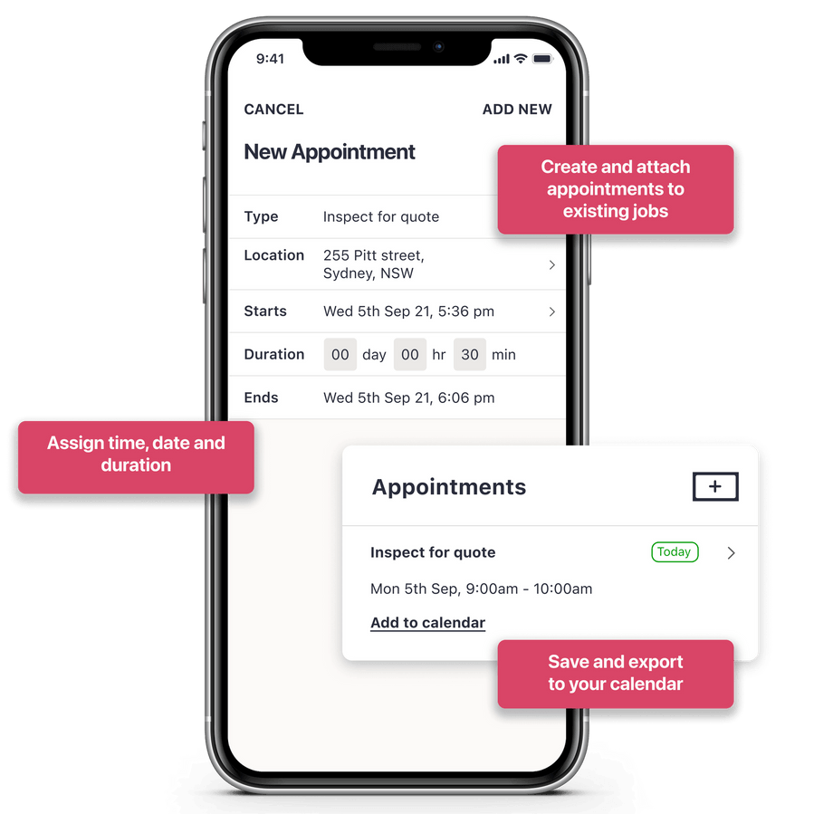 Create appointments for your jobs and export to your calendar for better time management.